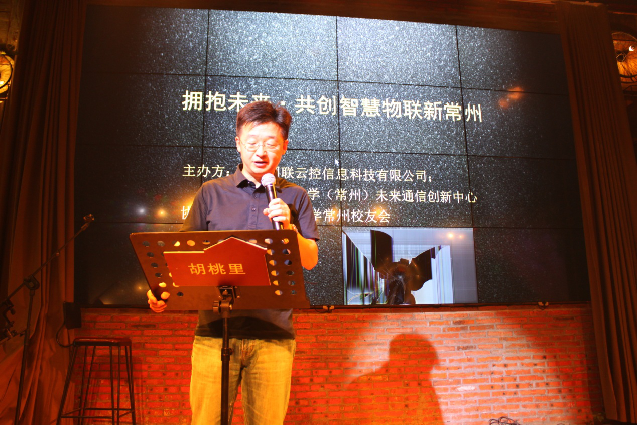 5月30日下午,由電子科技大學(xué)(常州)未來(lái)通信創(chuàng )新中心和常州網(wǎng)聯(lián)云控信息科技有限公司聯(lián)合主辦,電子科技大學(xué)常州校友會(huì )協(xié)辦的“擁抱未來(lái)!攜手共創(chuàng )智慧物聯(lián)新常州”主題行業(yè)交流會(huì ),在位于吾悅國際的胡桃里音樂(lè )酒吧舉行。常州網(wǎng)聯(lián)云控信息科技有限公司總經(jīng)理盛劍峰 -